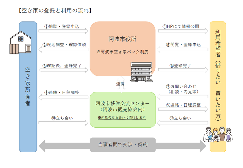 登録後の空き家の見学・交渉等の連絡・調整は、阿波市移住交流支援センター(阿波市観光協会内)の職員が行っております。